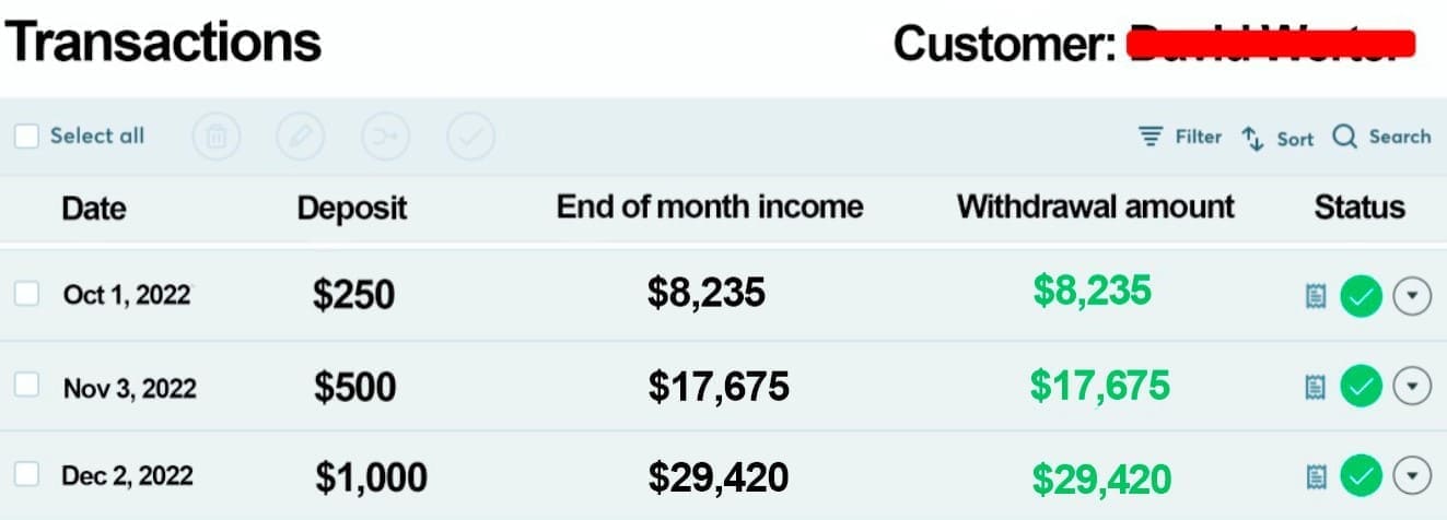 After that, Maria asked to see the earnings of a random user. Elon chose a Canadian citizen who had invested a starting sum of $500 in October. Maria was shocked.